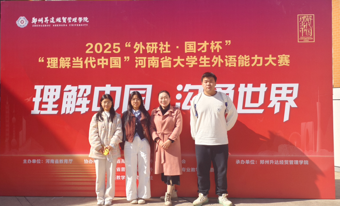 近日,由河南省教育厅主办,河南省高等教育学会外语教学研究分会、河南省普通高等学校外国语言文学类专业教学指导委员会、外语教学与研究出版社协办,河南大学、河南中医药大学、郑州升达经贸管理学院承办的2025“外研社·国才杯”全国大学生外语能力大赛河南赛区结果揭晓,我校参赛学生取得了一等奖1项、二等奖2项、三等奖1项的优异成绩。