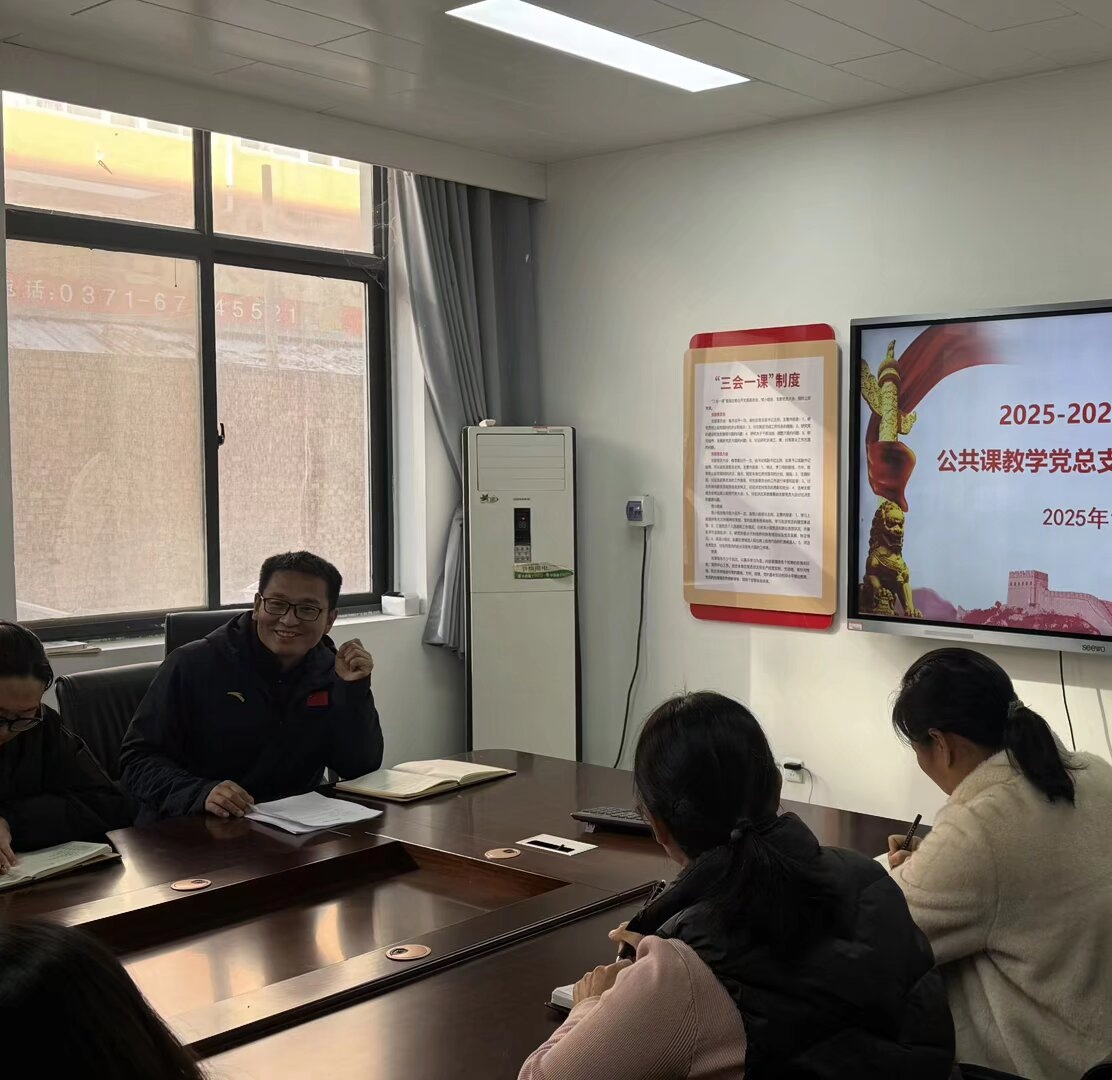 11月19日下午,公共课教学党总支分别在郑州校区112室、开封校区307室召开政治理论学习会议,会议由基础教学部主任韩正好主持,副主任张锋及全体专职教师参加本次学习。