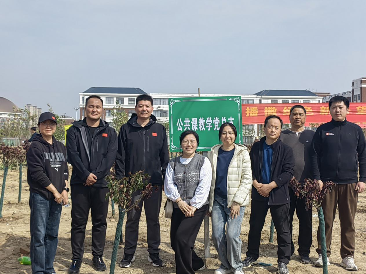 阳春三月,草长莺飞,植此青绿,正当其时。3月25日,公共课教学党总支积极响应学校党委倡议,在党总支副书记徐涛、基础教学部副主任张锋的带领下,全体党员教师和学生代表一起来到开封校区北院开展“同心植绿,共美校园”主题党日活动。